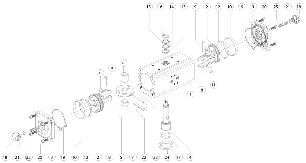 4.滾動摩擦的十字滑塊(通過活塞和無傳動裝置的軸,將線性運動轉(zhuǎn)換為旋轉(zhuǎn)運動)。活塞和傳動軸之間的摩擦力更小,從而減少零部件磨損。打開和關(guān)閉時有著更強的起動扭矩,相較于齒輪和齒條式執(zhí)行器,其尺寸更小,安裝空間需求更低。相較于齒輪和齒條式執(zhí)行器,其重量更小(-30% Kg/Nm),建造基礎(chǔ)設(shè)施時可降低成本。相較于齒輪和齒條式執(zhí)行器,其耗氣量更低,(雙效:-40% 空氣 cm3/Nm;單效:-20% 空氣 cm3/Nm),能夠有效降低壓縮機的工作負荷,或直接使用小尺寸壓縮機。