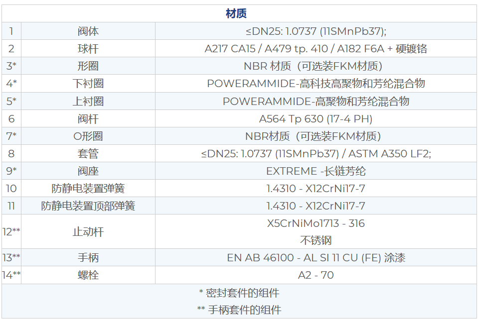 7.抗靜電裝置(球體,莖部與身體之間的電氣連續性):避免在易燃和/或爆炸性環境中可能引起著火的靜電電荷。在閥門的整個使用壽命內保證接觸安全。