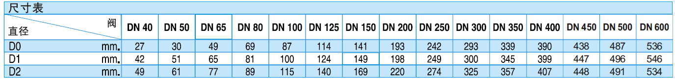 D0的最小管道法蘭直徑(閥門]居中位置為佳)。D1最佳管道法蘭直徑(建議選用)。