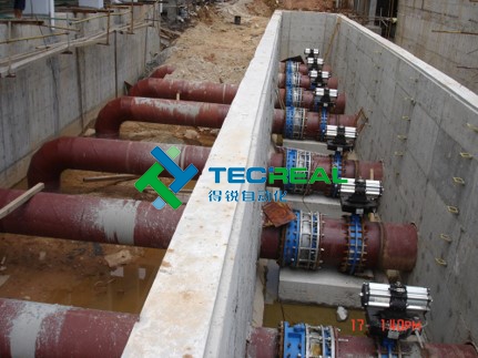 管廊里空間狹小,要在線拆卸伸縮節(jié)和整只氣動調節(jié)閥來更換密封圈,過程要用吊車和最少三人需要相當一段時間來更換,在這個時間內整個一組池都不能工作,并造成高額的人工與配件費用,經常這樣會給水廠帶來很大的損失,直接影響出水和進水的效果,并且給城市居民用水及工業(yè)生產帶來麻煩。