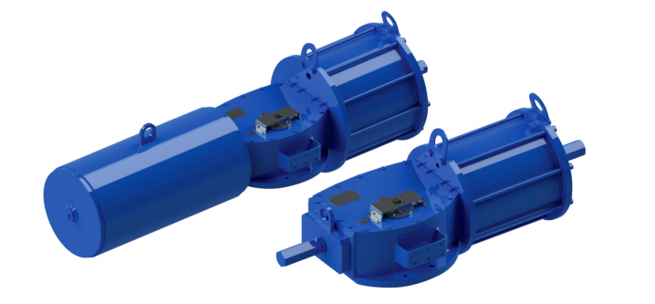 上圖是兩個OMAL歐瑪爾輸出力矩最大的產品,采用兩個分體氣缸,可在開關位置產生更強有力的扭矩,雙作用可達8000-16000Nm,單作用可達4000-12000Nm,根據客戶需要可提供50000Nm產品。特別適用各類大口徑90度角行程類閥門開啟或關閉的需要,可應用于石油、化工、天然氣和大型水利工程領域。