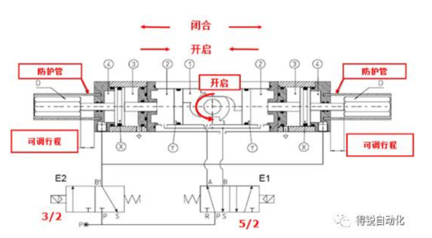 E2,二位三通電磁閥,用于控制兩個外部缸。