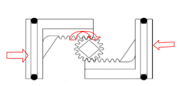 齒輪與齒條因為要嚙合所以其結構為平行式結構,缸徑必須大于齒輪齒條分度圓之和,同時,因為要承受載荷沖擊,齒條厚度加大,因而結構尺寸較大 |