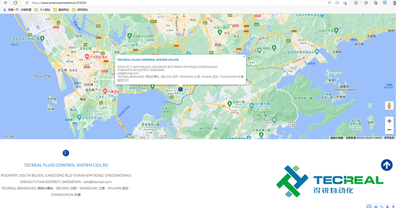 2. 看OMAL企業官網:打開企業官網,點擊右上角中文語言,然后點擊經銷商,選擇國家或地區,就會看到國內僅有一家代理商,那就是TECREAL FLUID CONTROL SYSTEM CO.LTD(也就是”得銳自動化“)。官方認證,值得信賴!