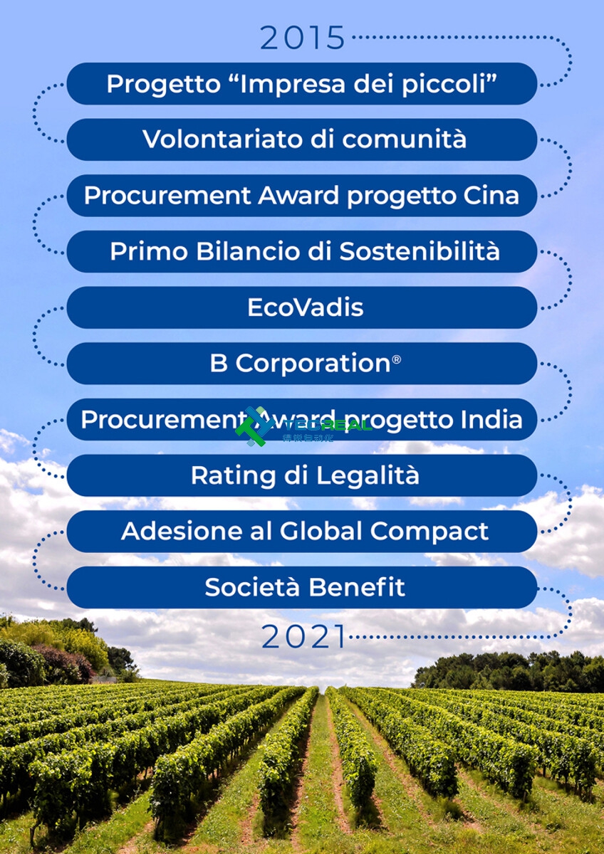 從那時(shí)起,我們繼續(xù)建立和鞏固我們的組織,并通過創(chuàng)新驅(qū)動(dòng)力圍繞這些主題管理我們的運(yùn)營(yíng)。但我們并沒有停止,為了給我們?cè)谖覀冾I(lǐng)土上的承諾提供更大的力量和普遍性,我們?cè)?2018 年成為意大利全球契約網(wǎng)絡(luò)的創(chuàng)始成員。今天,作為一家福利公司,完成了一個(gè)雄心勃勃且重要的項(xiàng)目,這是我們企業(yè)愿景的基礎(chǔ),即在人與環(huán)境之間找到適當(dāng)?shù)钠胶猓岣呱钯|(zhì)量,并為子孫后代保證一個(gè)更美好的世界。