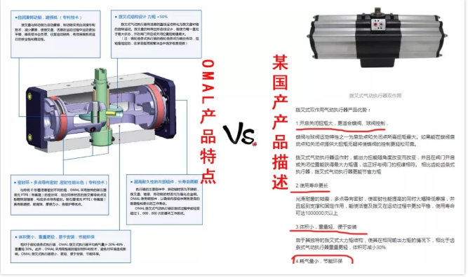 就是這樣一個改變氣動執行器結構的國際知名品牌,在如今,也面臨著同樣“被致敬”的尷尬局面。更有甚至,不僅連外形和結構山寨,連宣傳文字的產品特點都一模一樣的去復制。