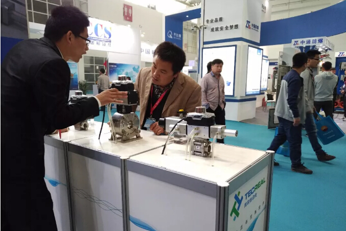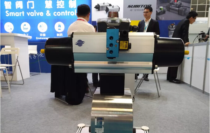(泵管閥展會現場展出不同類型的執(zhí)行器和閥門)