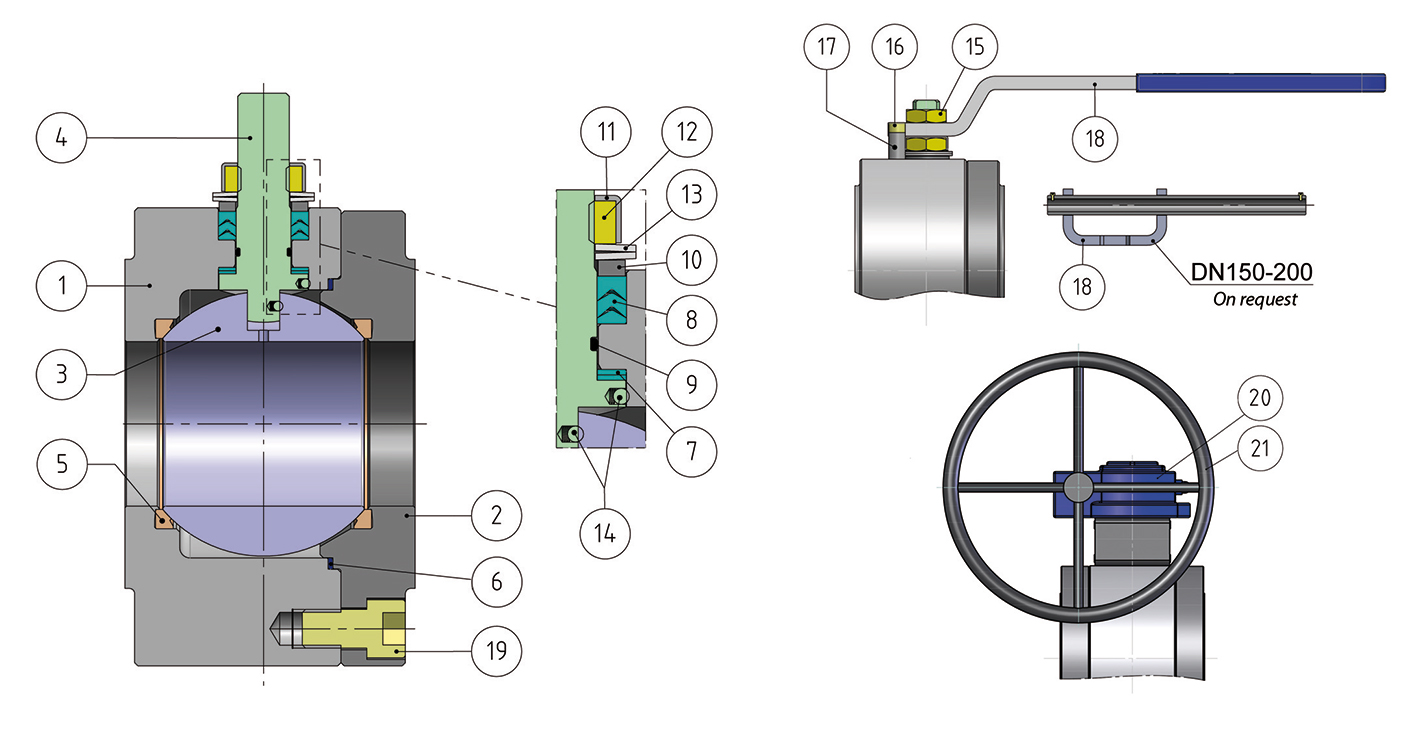 采用材料(用于閥體/活塞球/閥桿)與標(biāo)準(zhǔn)配置不同的參數(shù)要求,請(qǐng)與我們的銷售部門聯(lián)系