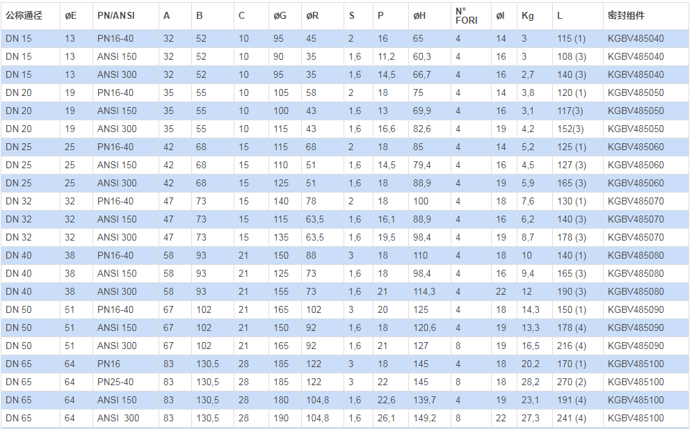 密封材料:PTFE加玻璃(RPTFE-GF),PTFE加碳石墨(RPTFE-CF)。如需其它密封材料,請與我們的銷售部門聯(lián)系。