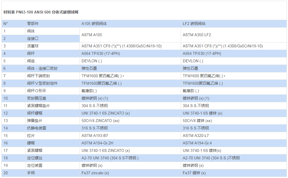 | (**): 對于公稱通徑 ≤DN40x32 的閥門,僅能提供 CF8M材料的? |