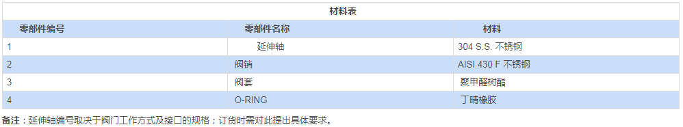 | ? : 對于公稱通徑 ≤DN40x32 的閥門型號,僅提供采用 DEVLON 材料做的 |